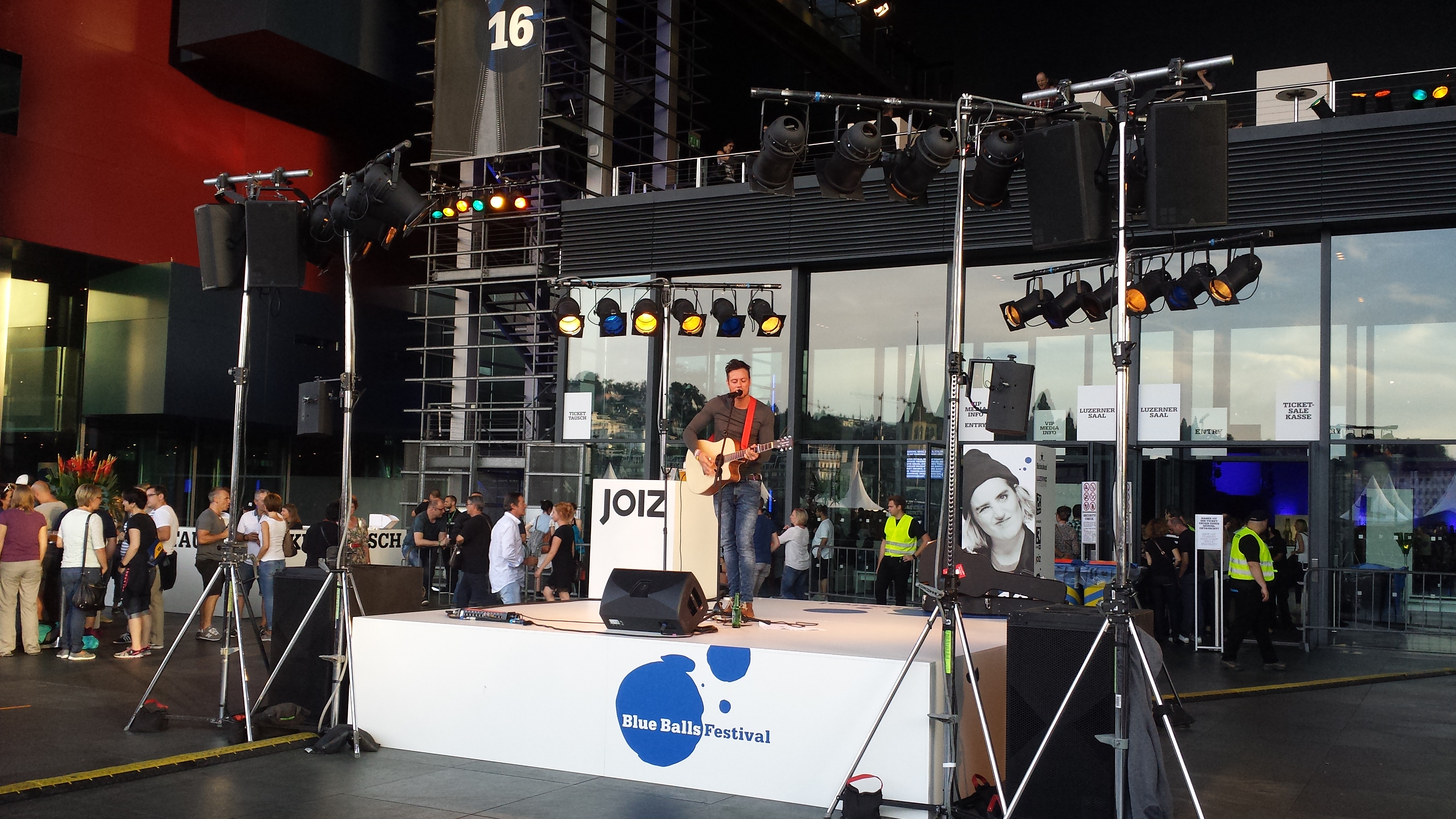 Beschreibung: Der britische Singer-Songwriter Gareth Icke beim Blue Balls Festival 16 in Luzern in der Schweiz